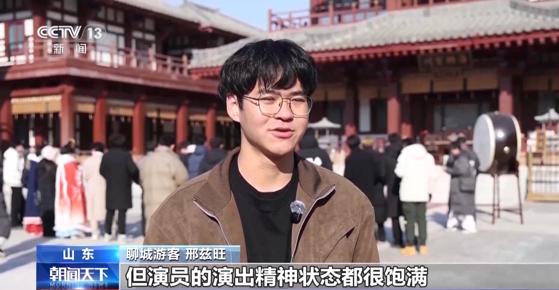 聊城游客 邢兹旺:虽然天气比较寒冷,但演员的演出精神状态很饱满,也带我参与了一番,体验感挺不错的。