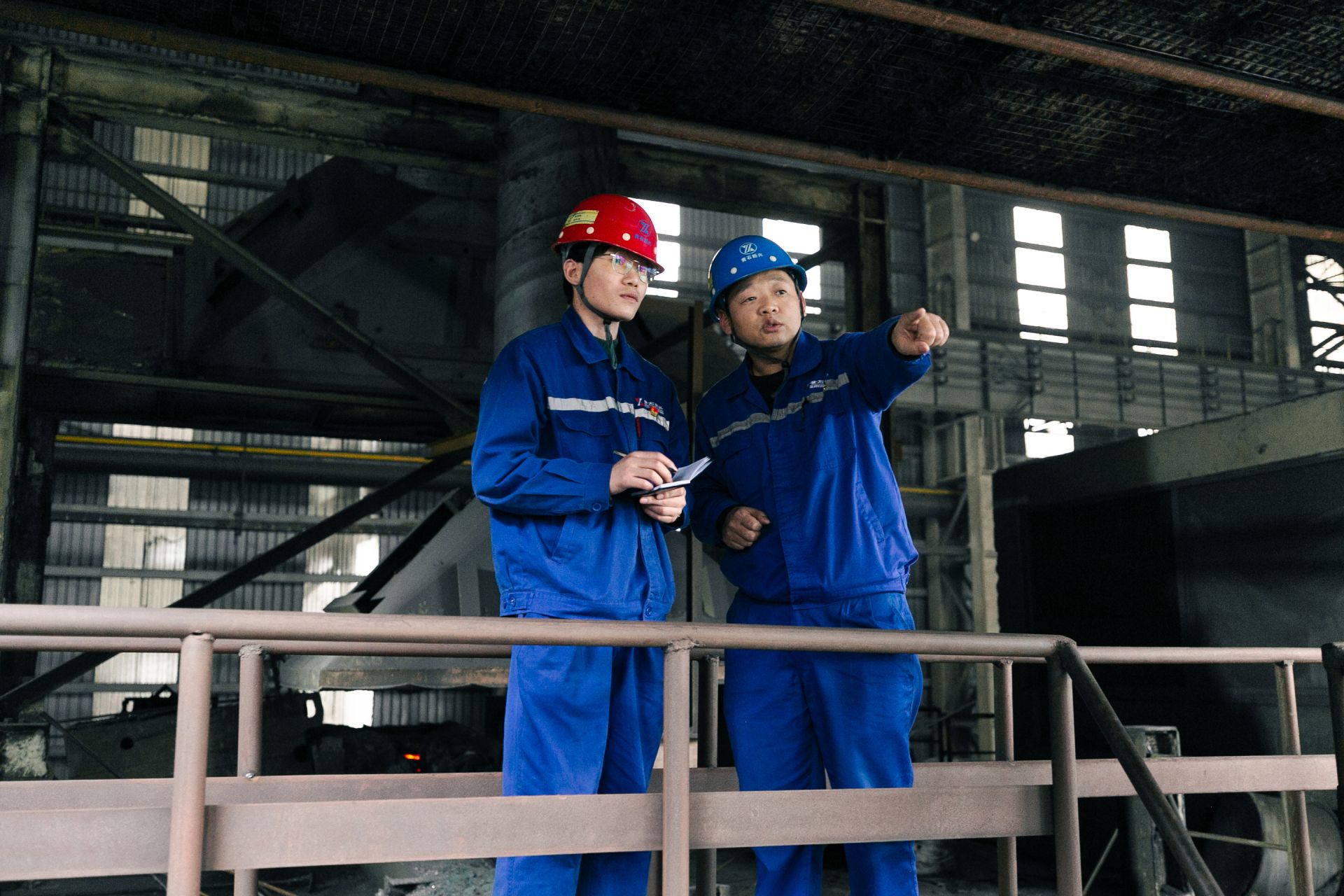 鱼满红(左)和师傅武志峰在生产现场