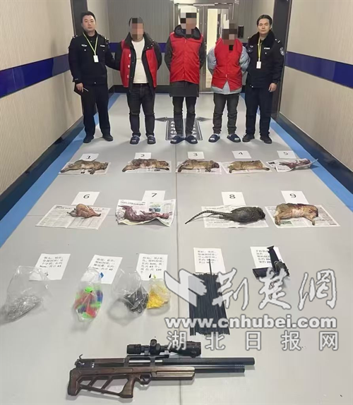 荆楚网(湖北日报网)讯(通讯员 朱凯如)近日,钟祥市公安局石牌派出所成功侦破一起非法狩猎案,抓获李某、常某、崔某 3 名犯罪嫌疑人,当场查获改装无人机、气枪等作案工具及9只“三有”保护野生动物。