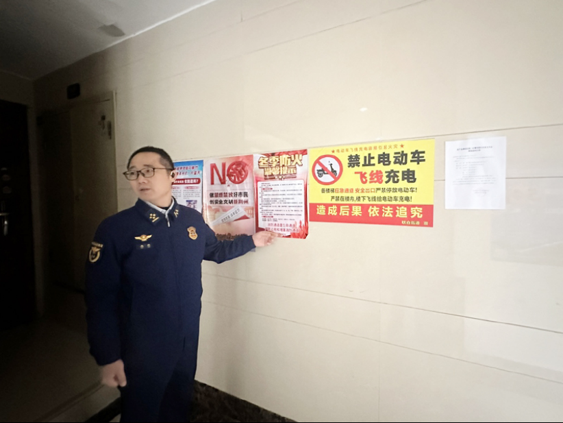 排查过程中,大队组织小区物业对采用外墙保温系统的高层建筑开展全面排查,逐栋采集建筑基本情况、外墙保温材料类型等基础信息,进一步夯实高层建筑消防安全基础数据,为规范设置和更新“一楼一牌”数据提供有力支撑。同时,结合冬季火灾防控特点,在小区显著位置粘贴冬季防火温馨提示,持续强化居民消防安全意识。