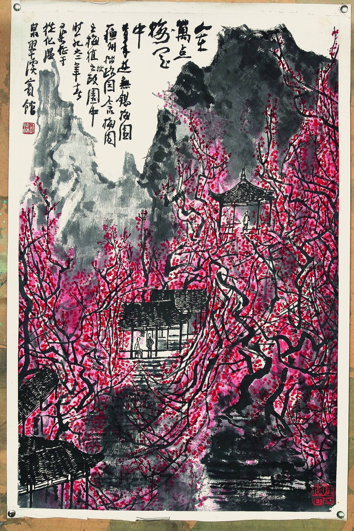 李可染《人在万点梅花中》 纸本设色 1961