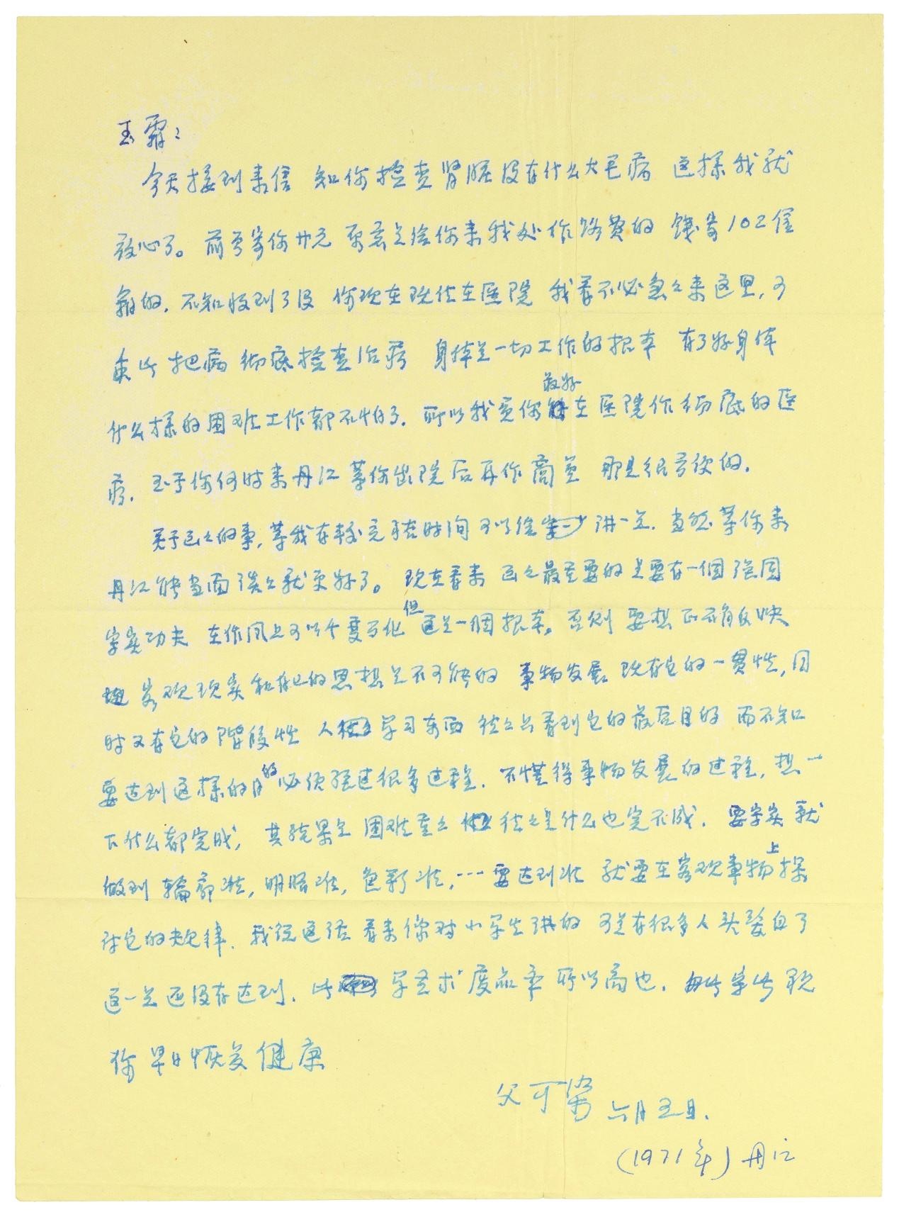 1971年李可染给李玉双的信