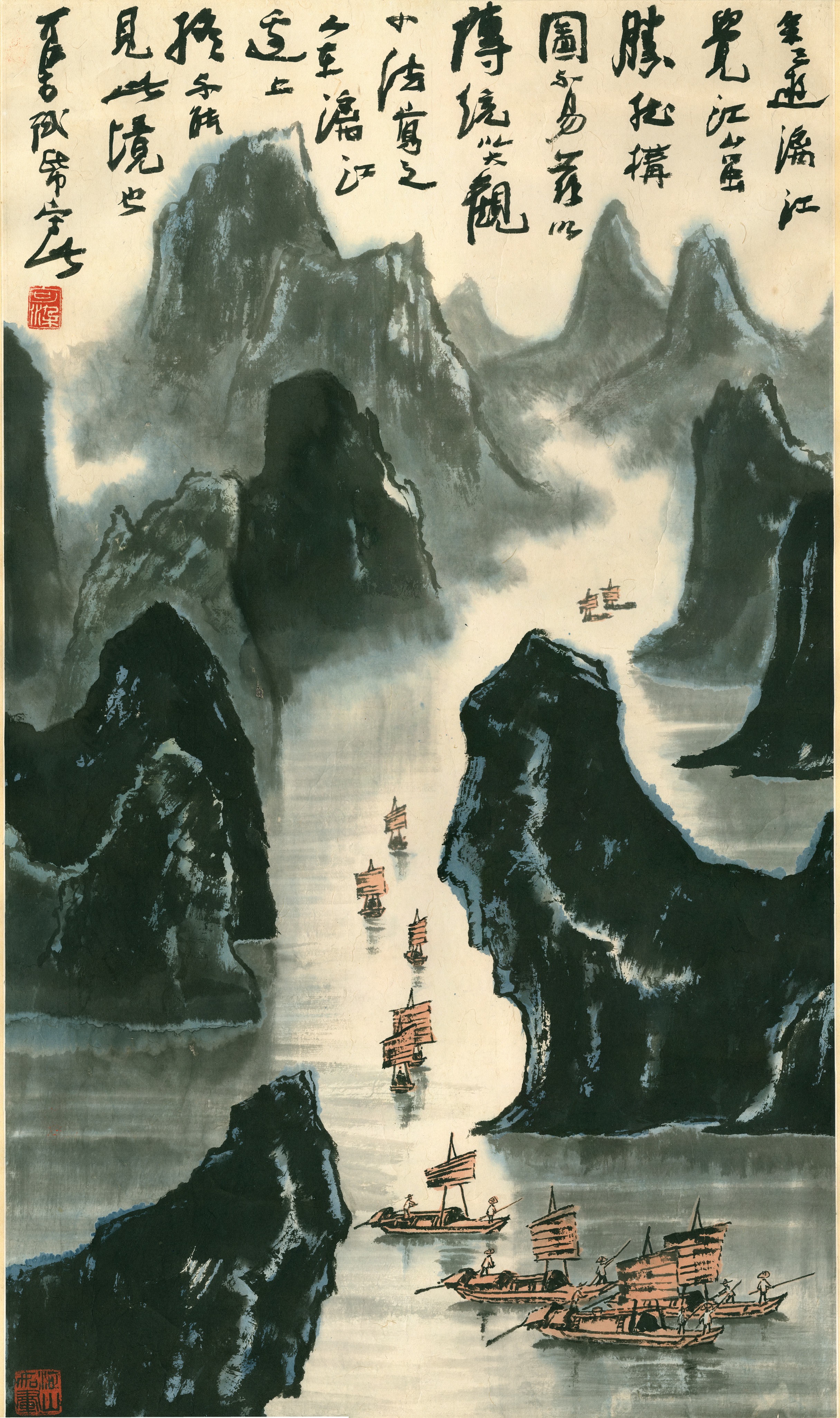 李可染《漓江》 纸本水墨 1973