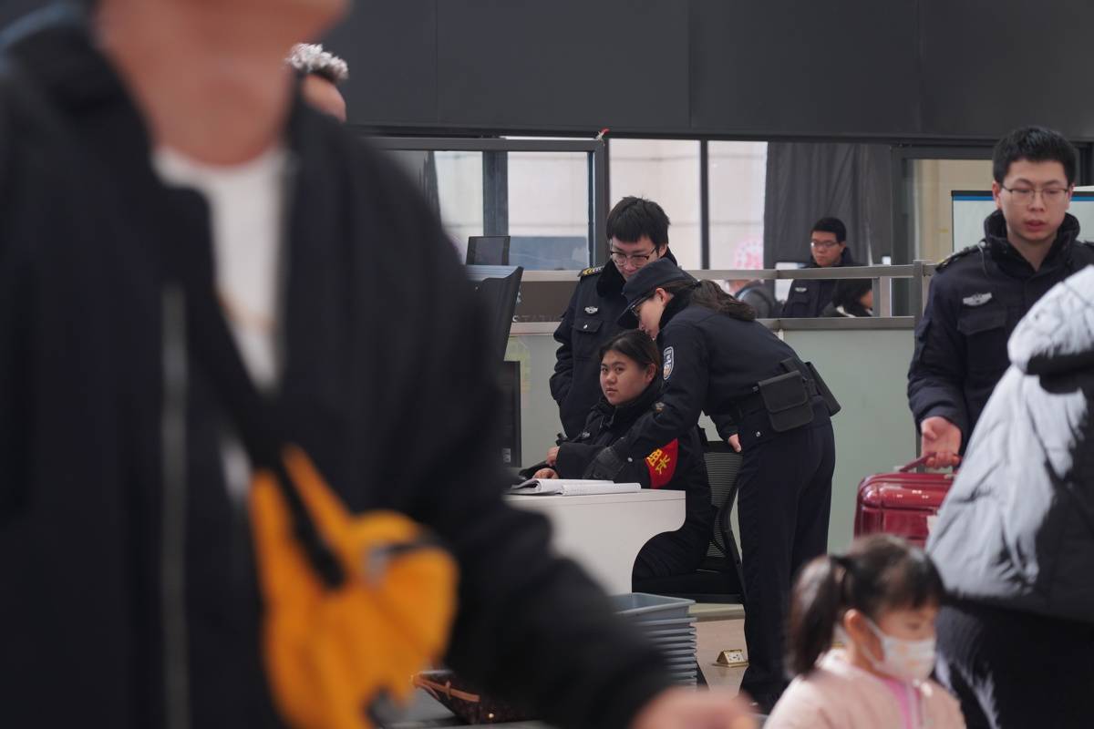 2月2日,2026年春运开启,一部热气腾腾的“流动史诗”再次在神州大地上拉开序幕。40天里,全国铁路预计发送旅客5.39亿人次,同比2025年增长5.0%。在这场归途的旅程里,武汉铁路公安处2000余名民警正用细致的安保措施、贴心的服务意识、雷厉的严打手段,书写着守护群众平安出行的生动故事。春运期间,武汉铁路警方将组织警力加强对管内大型车站的治安防控,要求武汉、汉口、武昌、信阳东等大站派出所联合地方公安机关、城管、护路办等部门常态化开展联合执法行动,不断净化火车站地区、铁路线路治安环境。今年1月1日以来,管内各站派出所共开展联合治安查控200余场次,查处消除各类隐患430余处,为铁路春运安保打下坚实基础。同时,还将与客运部门、地方气象部门加强沟通联系,及时掌握客流变化、热点车次、热点方向加开临客情况以及雨雪恶劣天气状况,完善各类紧急预案,强化警力部署,确保及时妥善处置突发情况。此外,组织警力对管内客运车站和旅客列车加大安检查危监管检查力度,督导铁路相关部门要严格落实安检查危措施,确保人员和物品安全检查全覆盖。(湖北日报通讯员 李鹏翔 熊振迪 摄)