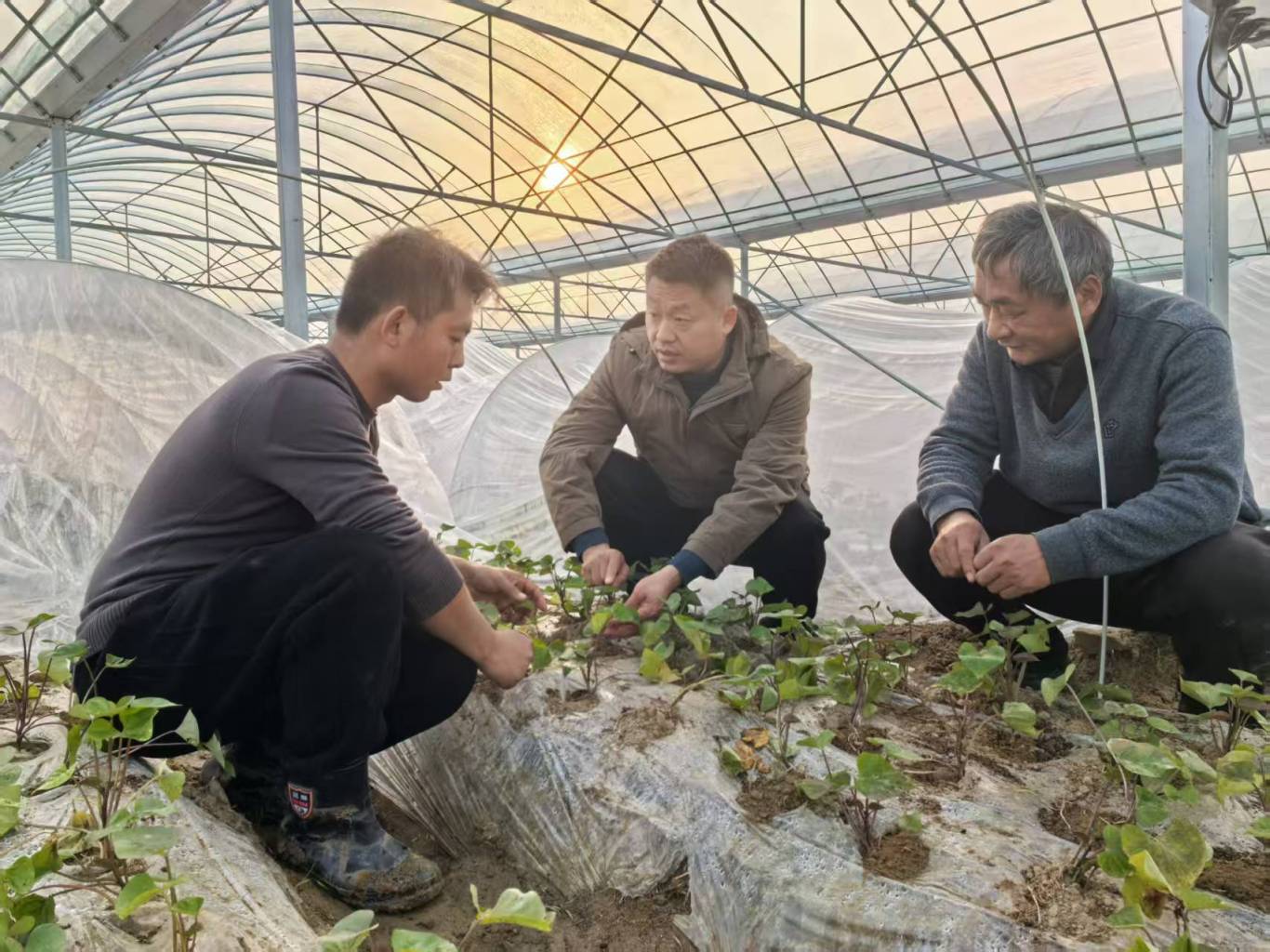 3日下午,在甘薯种植大棚里,工作人员正抢抓农时栽种甘薯苗,仅当天就种下3万余株。开春后,1千多万株“丝滑”甘薯苗和“福紫”紫薯苗将走上市场,成为乡亲们的“致富苗”。