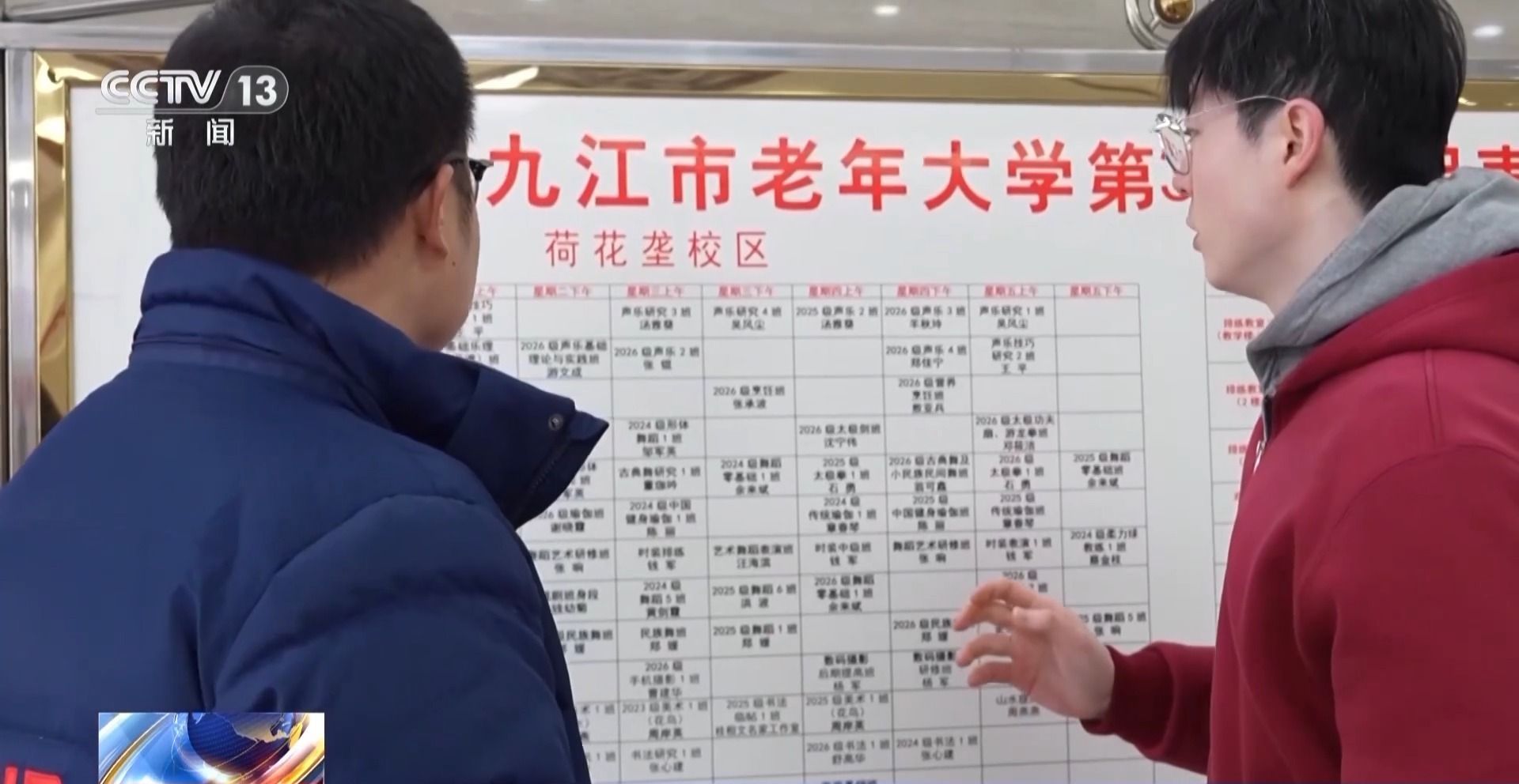 九江市濂溪区老年大学音乐教师 董福顺:这些叔叔阿姨们很可爱,每个人的表情都不一样,然后还有捣乱的,别人都在认真做作业他要去摸别人一下。最初发这个视频,就是想让老年人回到家里跟着练。然后发着发着网友就开始叫“大型认亲现场”,然后就开始嘱咐,“老师能不能晚点放学,不然又回来念叨”。然后你看,“都挺好,给我爸爸报上”,其实你看都是在关心自己的长辈,我们其实都想去对父母说我爱你,但是中国人很含蓄,所以在这里边我看到了这一点。