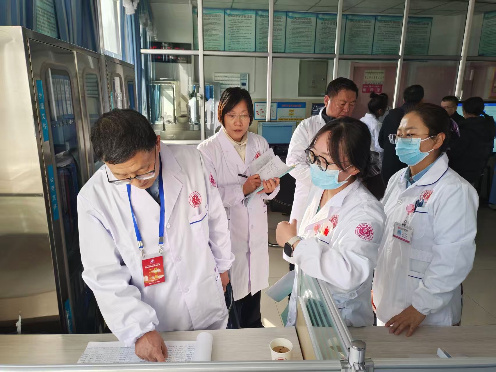 付沫(左二)在进行二甲复审筹备工作。