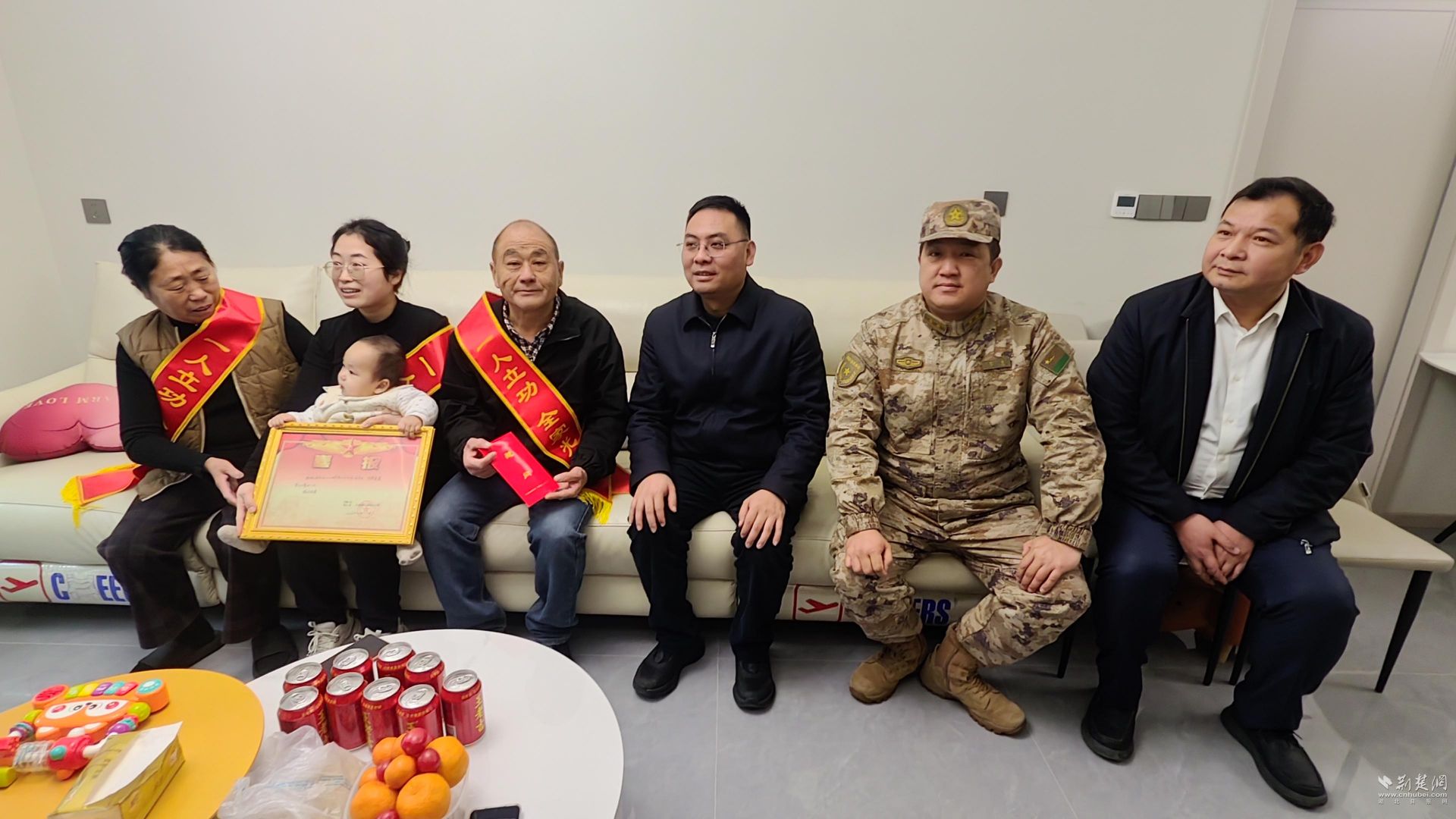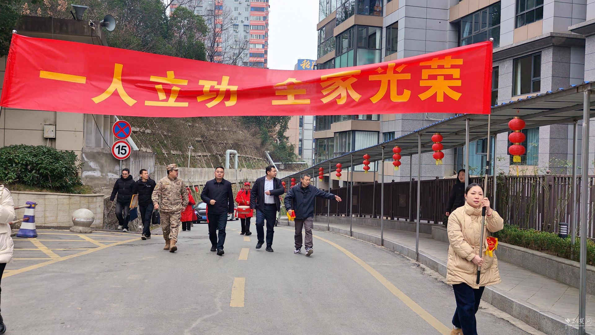 锣鼓声刚至,喜悦已传遍邻里。邻居们闻声而来,聚在军属家门前,道喜声、欢笑声与锣鼓声交织在一起,社区内一片喜庆。“老焦家孩子真有出息!”“恭喜!这是全社区的骄傲!”军属们郑重接过喜报,脸上满是欣慰与自豪。区政府相关负责同志亲手为他们佩戴“光荣之家”绶带,关切询问家庭近况,将军属的喜悦与荣光深深记挂在心。