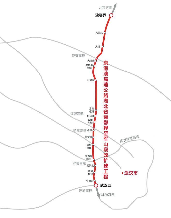 湖北日报讯 (记者戴辉、通讯员张钰妍、陈雯雯、刘伍华)2月6日零时起,随着双向八车道和沿线新改建的收费站投入运营,由湖北交投集团投资建设的京港澳高速公路鄂豫界至军山段(湖北北段)“四改八”改扩建工程正式通车。