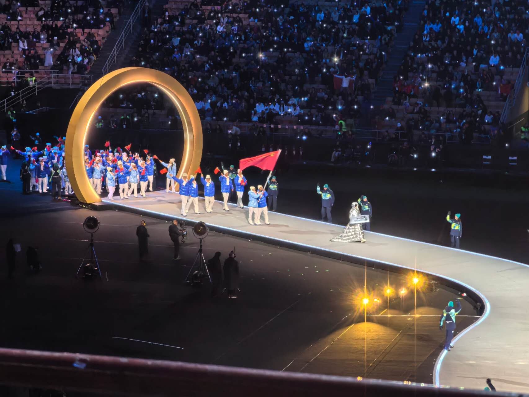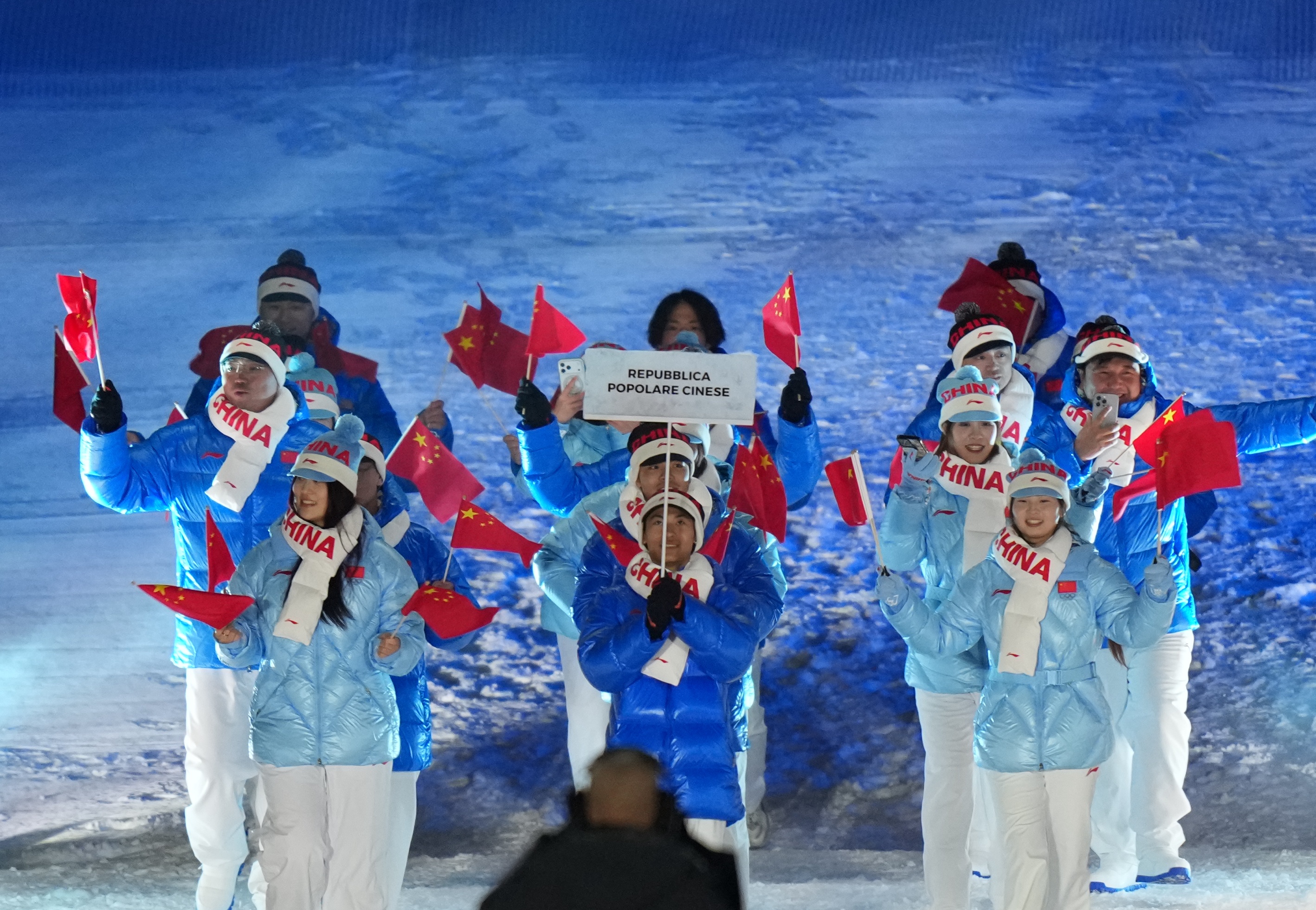 2026年米兰-科尔蒂纳冬奥会开幕式上,中国体育代表团入场。