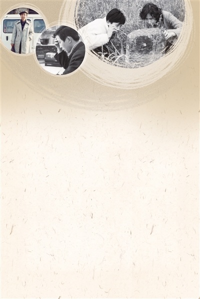 徐鲁(左)与阳新县文化馆同事在农村考察民俗