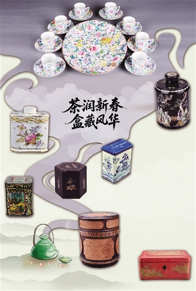 此次特展中的展品有一批样式丰富、设计精美的茶叶包装盒、茶叶罐等颇为吸睛,一套民国时期的葡萄花叶纹瓷器套件、一套19世纪的法国银茶具、一套20世纪日本镀金漆器咖啡茶具……可以让观众了解不同国家的饮茶习俗。
