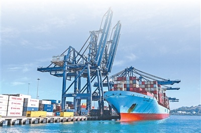 服务于“车厘子快线”的货轮停泊在智利圣安东尼奥港。豪尔赫·比列加斯摄(新华社发)