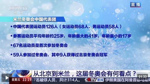 北京时间凌晨3点钟,米兰冬奥会开幕式即将在米兰圣西罗体育场举行,这场冬奥会有何特色和亮点?中国代表团备战情况如何?《新闻1+1》聚焦亚平宁半岛,开启这场即将上演的冰雪盛宴。