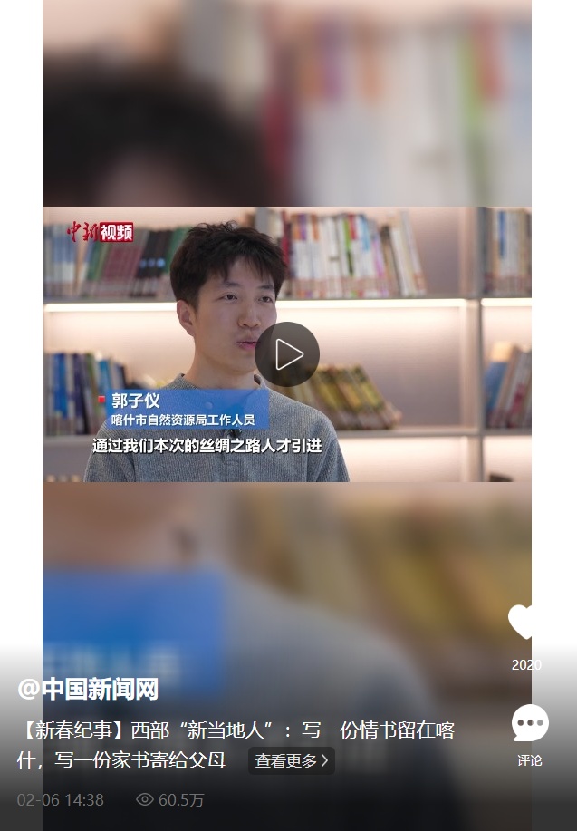 古丝绸之路重镇喀什坐落于塔里木盆地西缘,有着“五口通八国、一路连欧亚“的地理优势,2024年,喀什地区实施人才引进政策,号召全国各地的高校毕业生赴喀什就业生活。2026年春节临近,中新社记者实地采访这群特别的“新当地人”,他们并非生于斯长于斯,却在短短半年至两年间,将汗水与梦想融入这片热土,视其为值得奋斗的“第二故乡”。