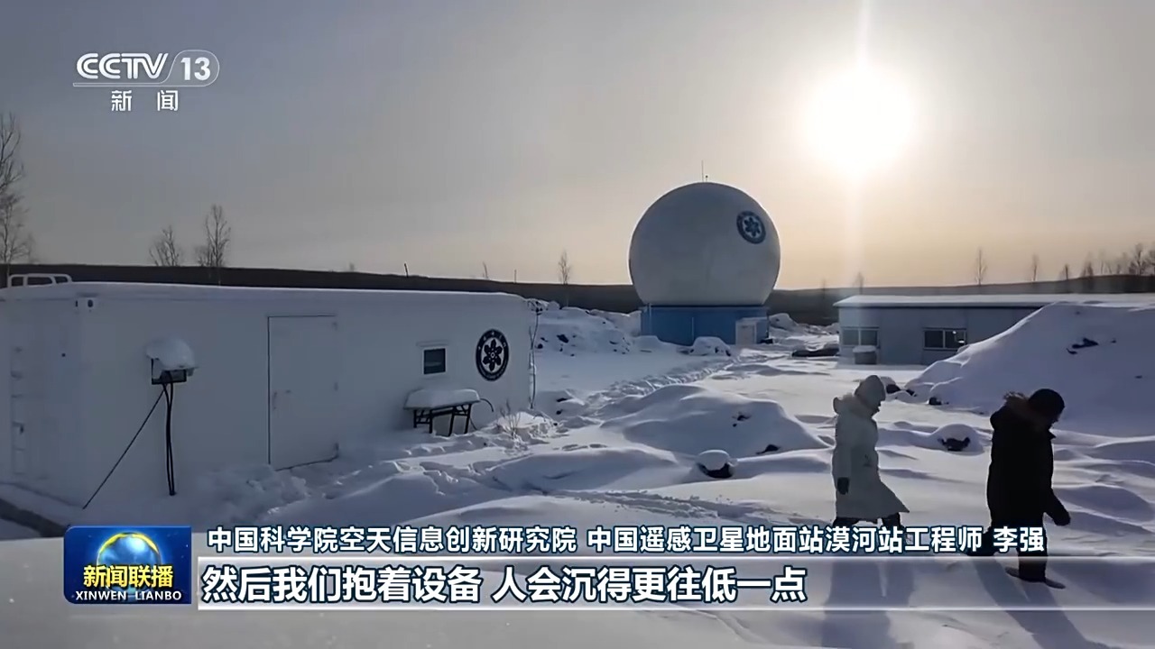 中国科学院空天信息创新研究院 中国遥感卫星地面站漠河站工程师 李强:我们抱着设备,人会沉得更往低一点,有时候雪都到腰这一块了 。