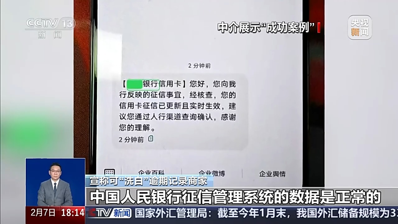 也有银行负责人告诉记者,正规的征信异议申诉渠道是完全公开且免费的,不需要通过中介花钱办理,也就是说,所谓的“征信修复”实际是利用银行和监管部门的投诉渠道进行“碰瓷”。相关专家也表示,试图通过非正规渠道“洗白”征信,不仅可能损失钱财,更面临着法律风险。