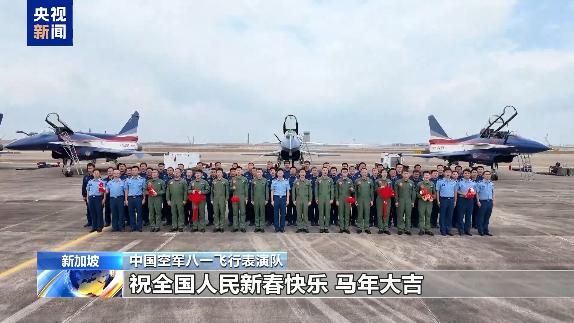 中国空军八一飞行表演队:我们是空军八一飞行表演队,我们在新加坡航展祝伟大祖国繁荣昌盛、国泰民安。祝全国人民新春快乐,马年大吉!