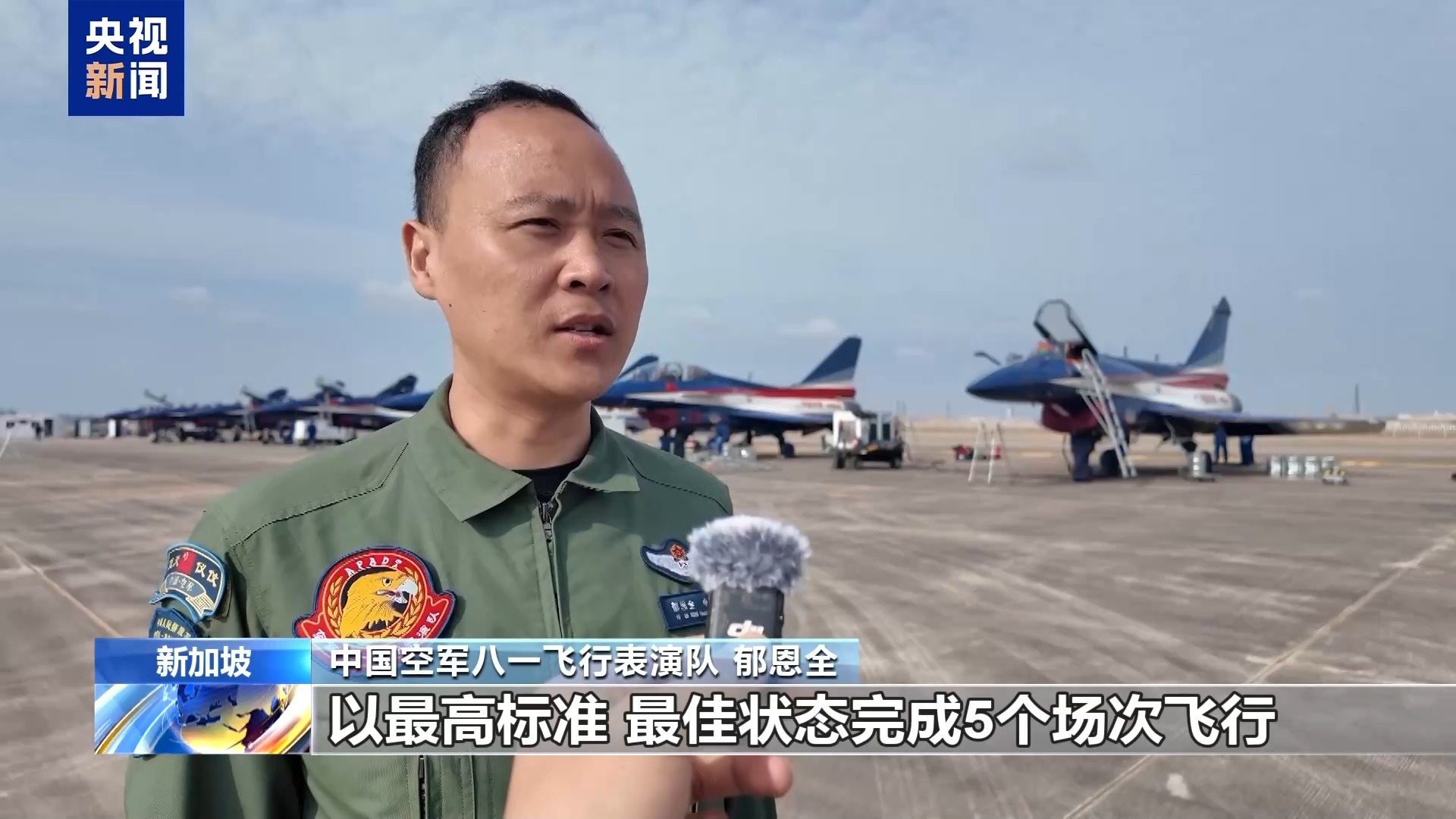 中国空军八一飞行表演队 郁恩全:此次参展,我们与多国飞行表演团队共舞蓝天,以最高标准、最佳状态完成5个场次飞行,用多彩航迹向来自世界各地的观众送上美好祝福,也为增进中新两国两军互动交流架设起友谊桥梁。