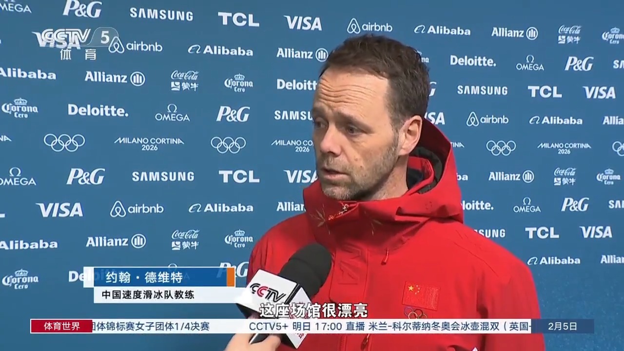 中国速度滑冰队教练 约翰·德维特:这座场馆很漂亮,我听说比赛期间这里每天的票都卖完了,每场比赛我们都可以见到6000名观众来为大家加油,这种感觉太美妙了。冰面的条件也很不错,我对冰质感到很惊讶,我原本以为它没有这么好,但是现在确实很棒。