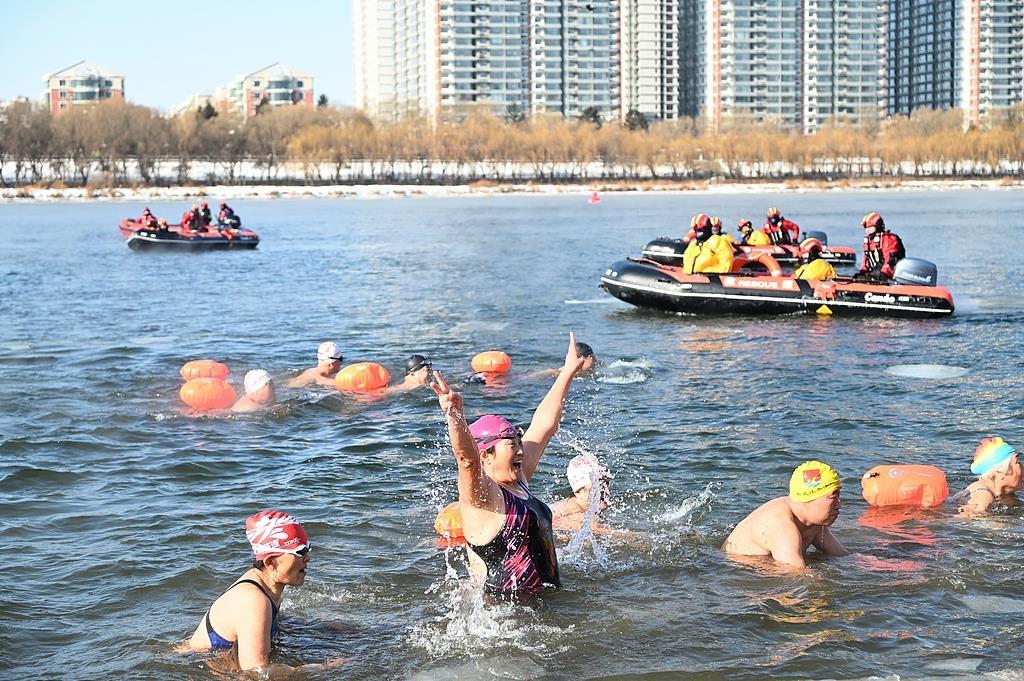 吴国强:一般情况下,我们在0到零下4摄氏度游3分钟左右最好,5到10摄氏度之间我们控制在10分钟为最佳。如果在水中遇到冷、麻、胀、痛或者是呼吸困难、抽筋等现象,不要惊慌,要立即上岸。上岸后要擦干全身,穿好衣物,防风保暖,同时要进行慢跑,促进血液循环。