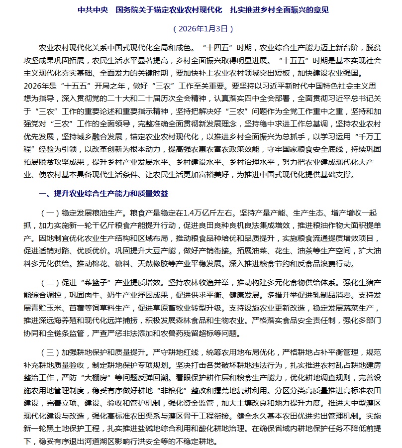 这是“十五五”首个中央一号文件