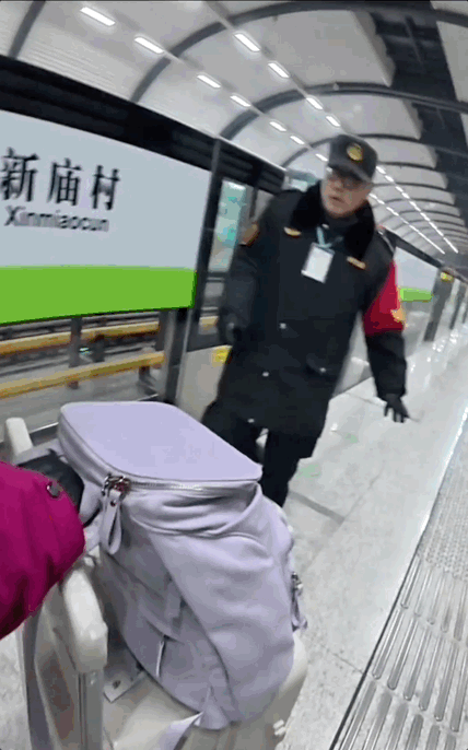 地铁工作人员一路引导她上车,并不停地提醒她注意脚下。当地铁4号线列车抵达新庙村站,接她的工作人员已经在等候,最后这段路,他们也陪着她,直到将她安全交到来接站的父亲手中。