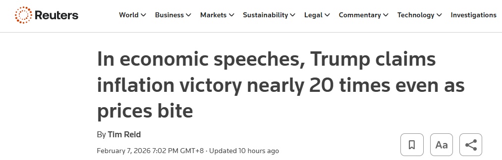 报道认为,这些数据与美方“已解决生活成本危机”的表述形成反差。而相关言论将通胀问题描述为“已经解决”,这一说法难以与民众在超市等日常消费场景中的体验相吻合。