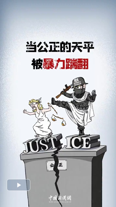 近日,两名美国公民古德和普雷蒂,遭美国移民与海关执法局(ICE)执法人员枪击身亡。两起事件在当地以及全美多个城市激起连续抗议示威活动。当公正的天平被暴力踹翻,当正义的符号被拆解篡改,所谓正义,不过是强权者随时可抛弃的装饰物;所谓公正,不过是掩盖暴力的幌子。生命应当被平等尊重,而非成为滥权的牺牲品。