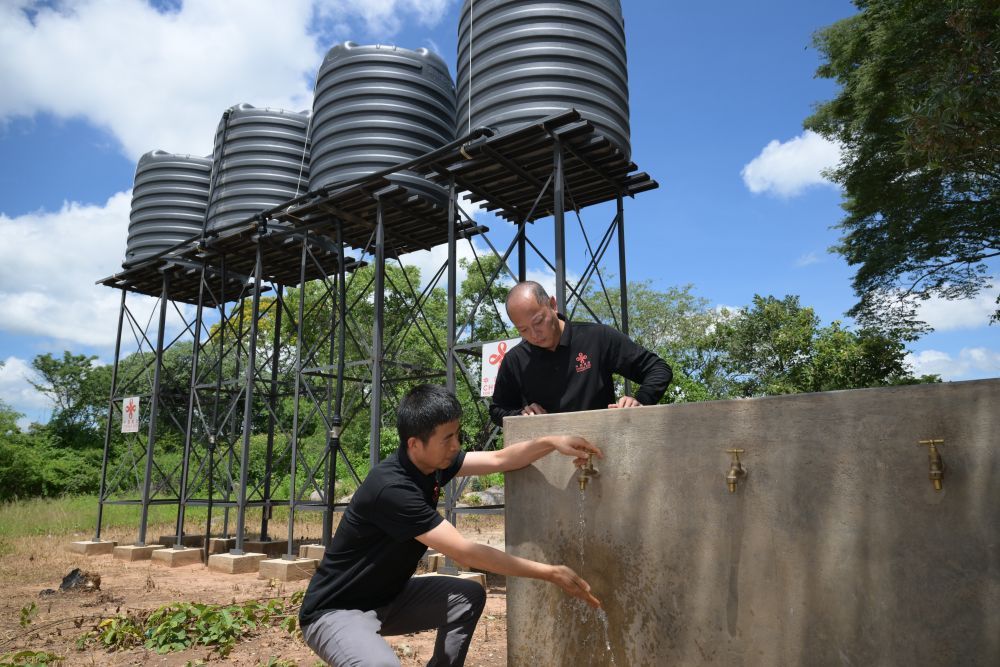 1月26日,在津巴布韦中马绍纳兰省沙姆瓦地区津迪村,中国援津第四期高级农业专家组专家在一处储水点检查水龙头。新华社记者 杨光 摄