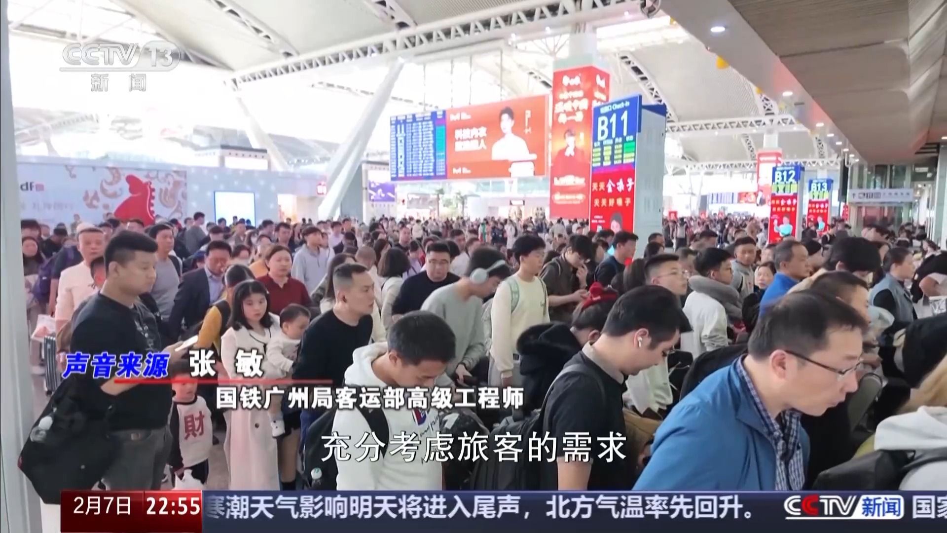 国铁广州局客运部高级工程师 张敏:以广东省为例,根据监测,2026年节前到达广东省的客流达到1430.2万人次,增幅达到3.6%。这一趋势可以看出,反向团圆的春运出行模式越来越受欢迎。