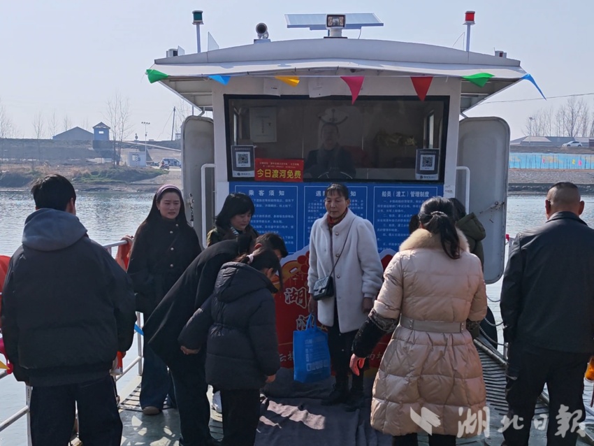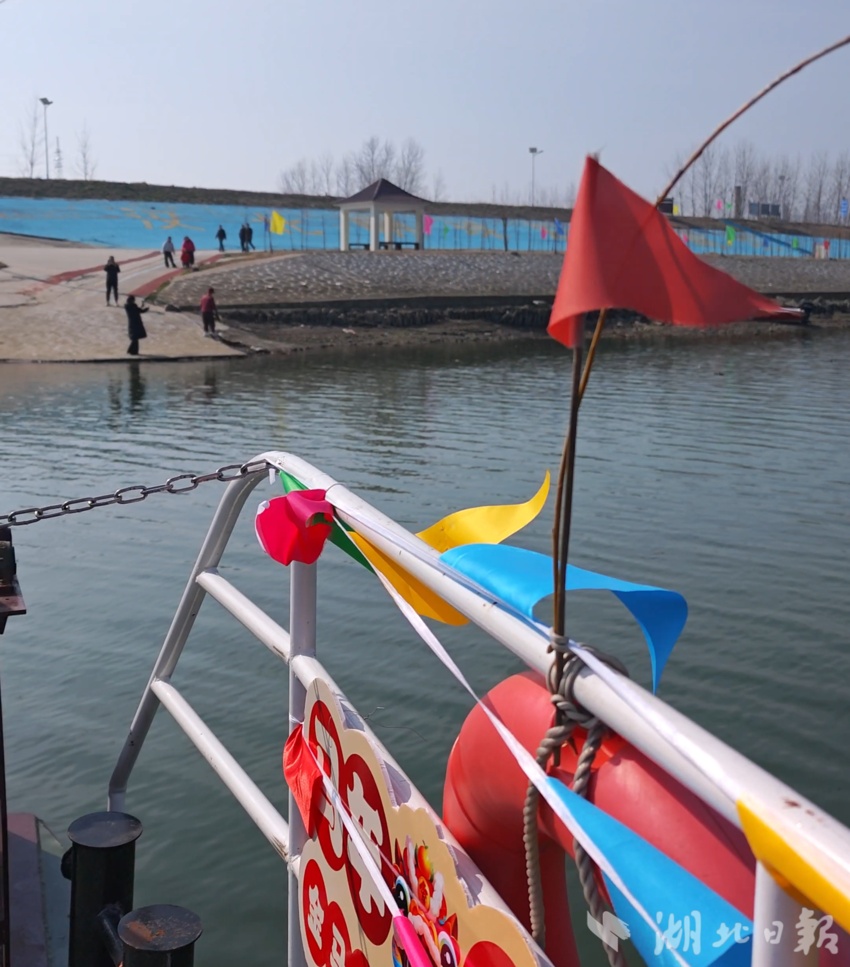 中午时分,活动在暖阳中正式开场。游客们相继登上免费渡船,沿汉北河徐徐而行。虽值二月寒时,河水却映着粼粼天光,沿岸草木疏朗,静谧中透出冬日特有的清新与开阔。这条黄金水道,不仅滋养一方水土,也成为今天人们走进湖乡的第一扇窗。