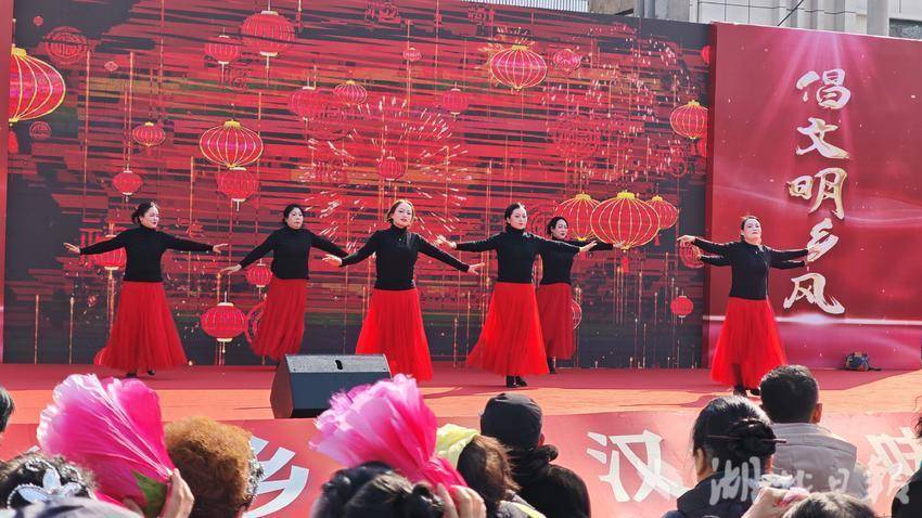 下午2点,文艺村晚在欢声笑语中拉开帷幕。舞蹈翩跹、歌声清亮、民乐悠扬,古筝流淌出山水之韵,武术展现着力量之美。带有浓郁楚地风情的快板莲湘、湖北道情等节目穿插上演,乡音乡情扑面而来。演出间隙,青年干部以“春风拂暖处,新风进万家”为题,开展移风易俗宣讲,为这场传统节庆活动注入了清新时代气息。