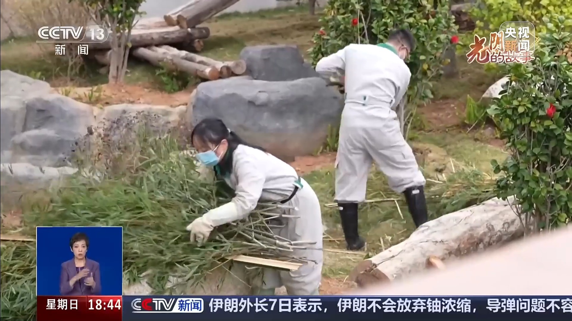 福州熊猫世界饲养员 李春平:如果说竹叶的质量差一点,或者不符合它的口味,它就只吃竿子。但竹叶的一些营养成分,一些植物蛋白含量会更高。如果它们竹叶吃得好的情况下,我们会去调节它的竹竿的摄入量。