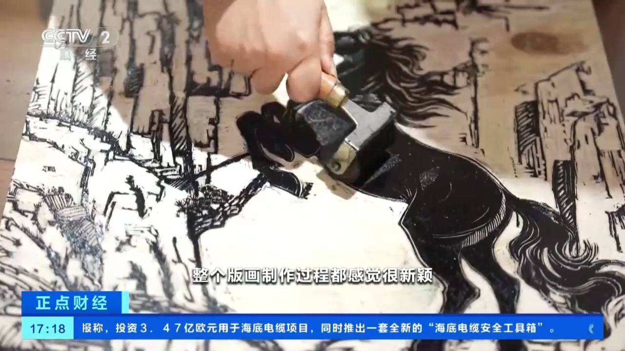 江苏游客 李若溪:整个版画制作过程都很新颖,打破了我对传统版画的刻板印象,它结合了马年,有一些新的寓意。