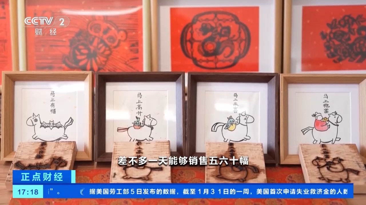 安徽黄山徽派版画市级非遗传承人 薛寅:今年创作马年生肖小版画,差不多一天能销售五六十幅。