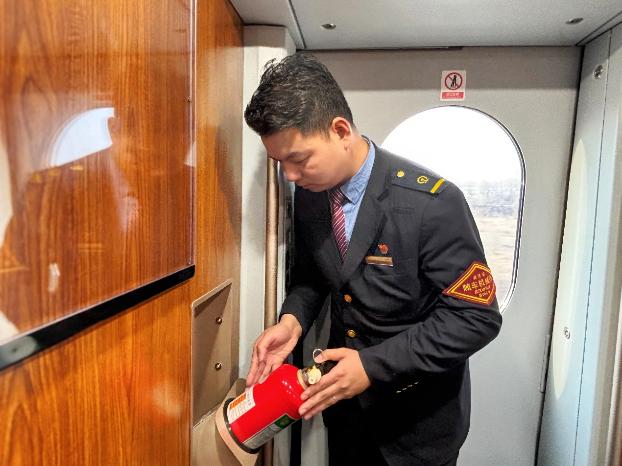“动车组客服设施事关旅客乘车体验,春节期间,客流量大,必须做到零故障出库,让旅客一上车就感受到家的温暖。”这是李文举第九次参加春运,早已把严谨刻进骨子里。