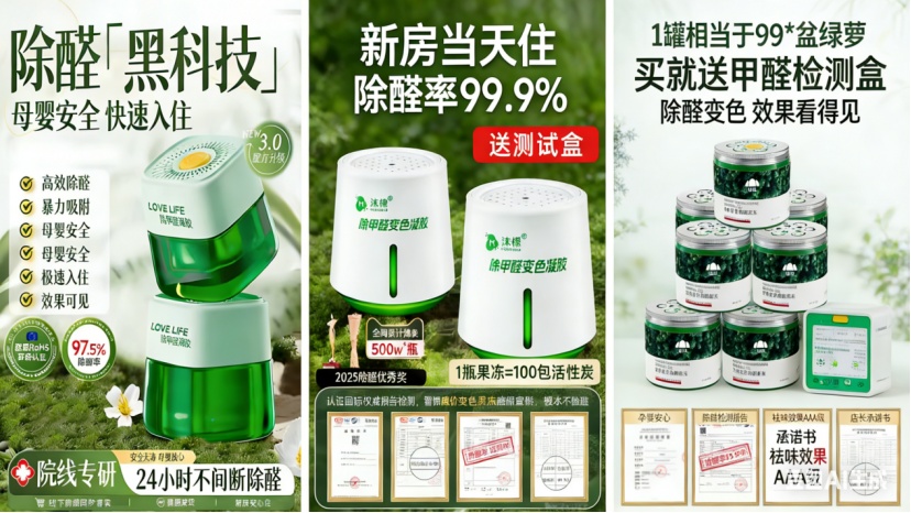 一是立即全面自查整改。限期完成电商平台详情页、宣传视频、直播话术等宣传渠道的违规内容清理,彻底删除与实际使用效果不符的夸大表述(单罐覆盖 10-20 平方米、24 小时搬新家、单台覆盖180㎡、一周拎包入住等);停止传播“开窗无用论”等贬低传统除醛方法的不当言论,客观向消费者普及科学除醛知识;删除无法核实的销量、口碑类涉嫌虚构的信息。