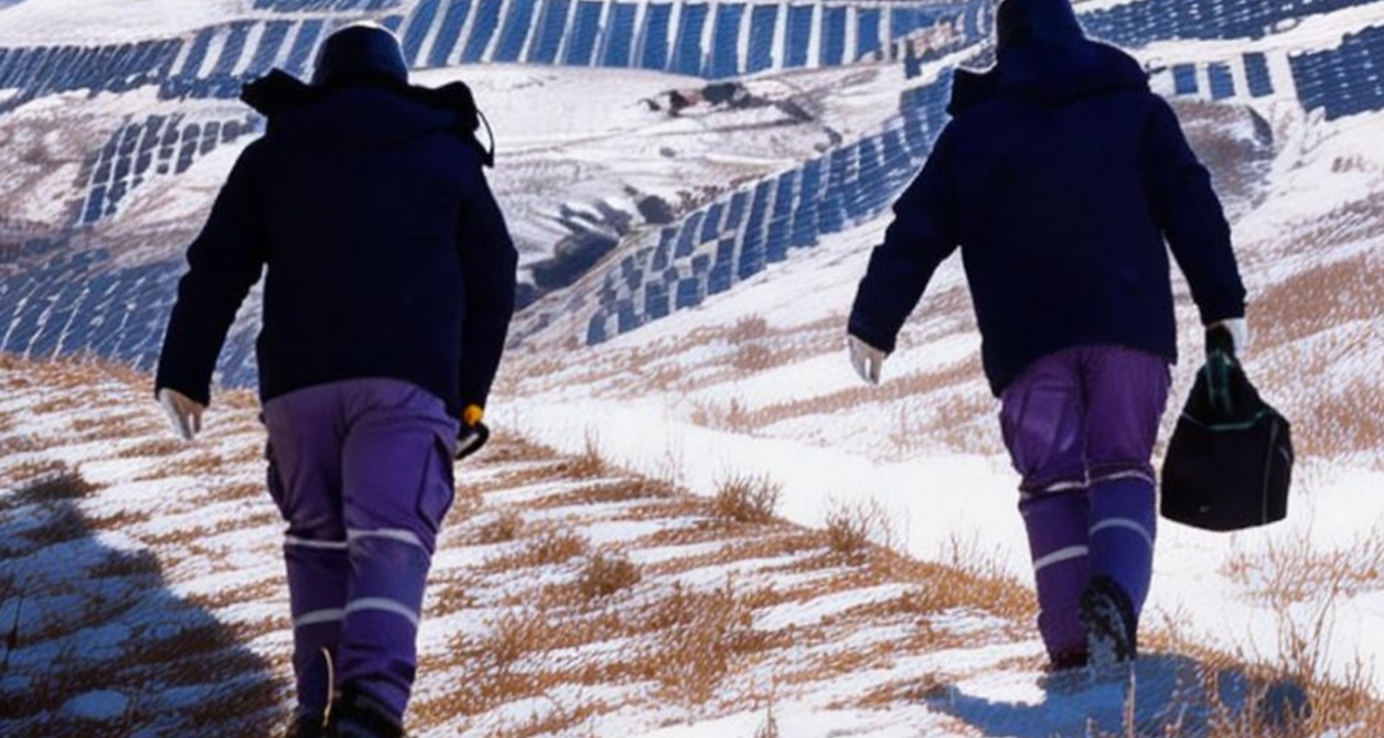 这里冬季最低气温常跌破-30℃,体感温度可达-40℃以下,但有一群“追光”的人一直坚守在这里。他们是一个7人班组,每月都穿行于绵延2.6万亩的光伏方阵之间,巡检145.4万块光伏板,守护这片万家灯火。