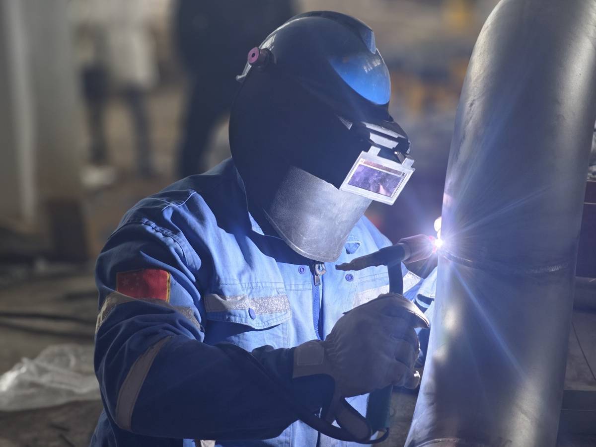 焊花飞溅,机械轰鸣。2月8日,位于潜江的湖北清北氢能潜江绿色氢气项目一期工地一片火热,30余名建设者抢抓工期,用坚守为我省首个绿氢气示范点建设再加把劲。
