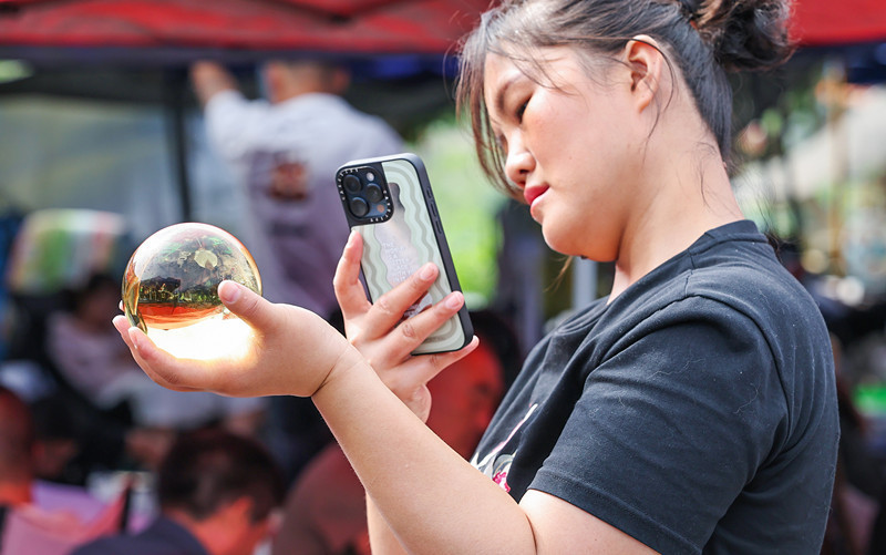 东海盛产水晶,图为顾客在2025年江苏省连云港市东海县的“水晶大集”上选购商品