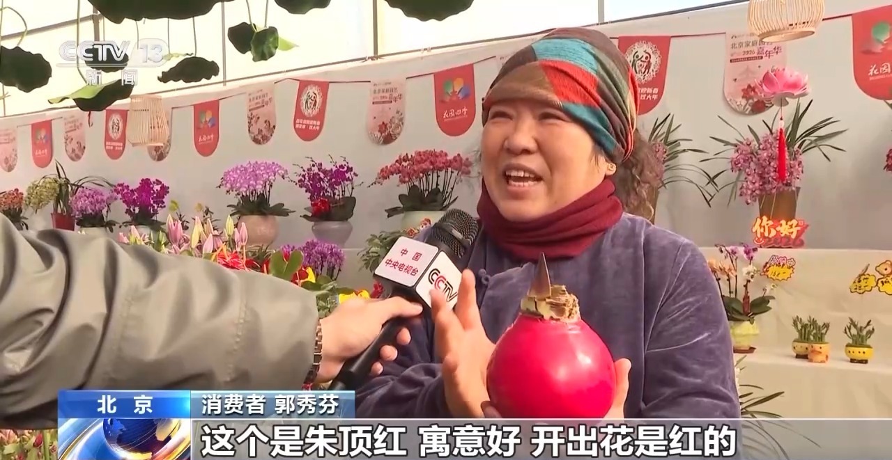 消费者 郭秀芬:这个是朱顶红,寓意好,开出花是红的,每年都买。