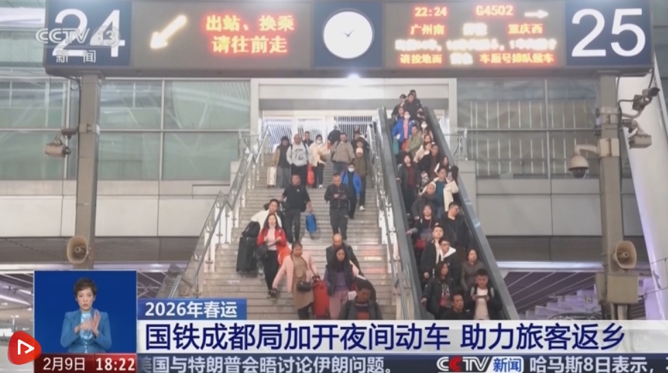 2月8日10时12分,G4736次夜间高铁列车从广州南站驶出,这是2026年春运期间大湾区开行的首趟夜间高铁。