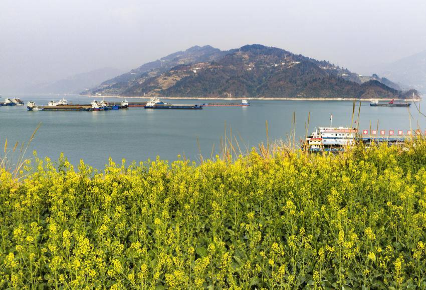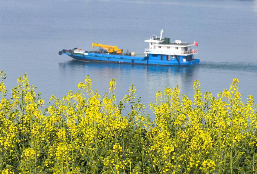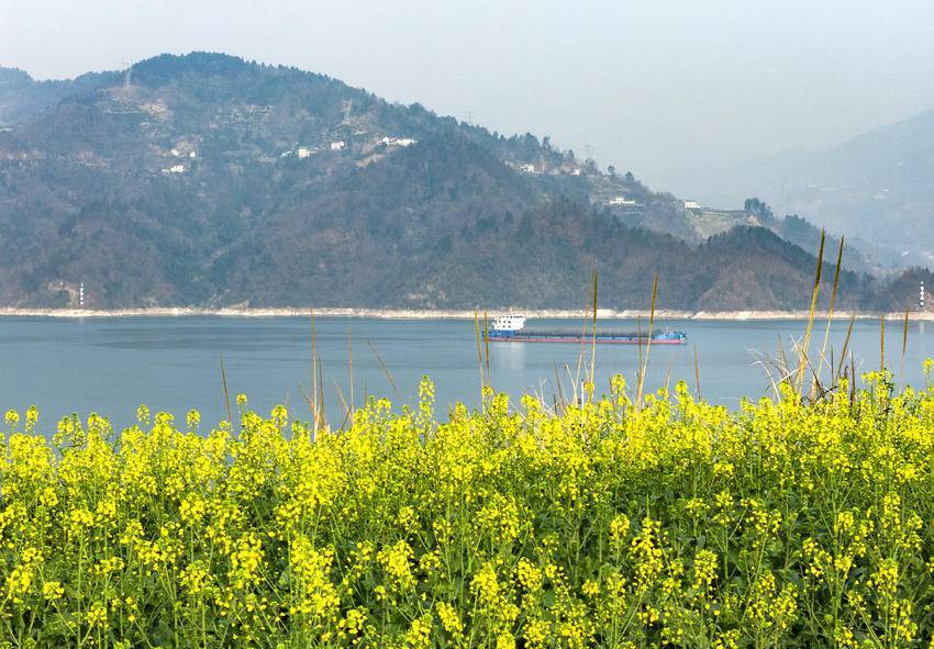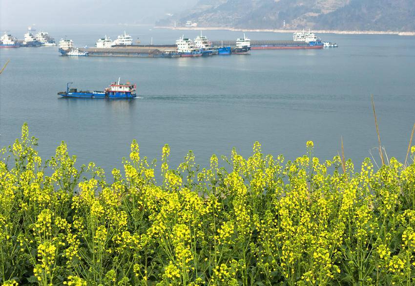 湖北日报客户端讯(通讯员吴承忠)时下,长江三峡地区春风送暖,峡江两岸的油菜花次第开放,美不胜收。图为2026年2月8日,船舶航行在长江三峡西陵峡湖北省宜昌市秭归县茅坪镇水域。