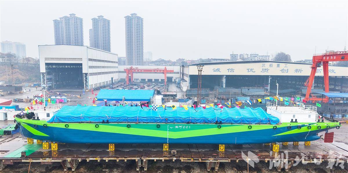 湖北日报讯(记者李源、通讯员周建仁、张星)2月6日,由安徽江淮绿色船舶科学研究院投资研发、中船集团武昌造船建造的甲醇动力新能源船舶“淮河001”号在武汉阳逻港下水。
