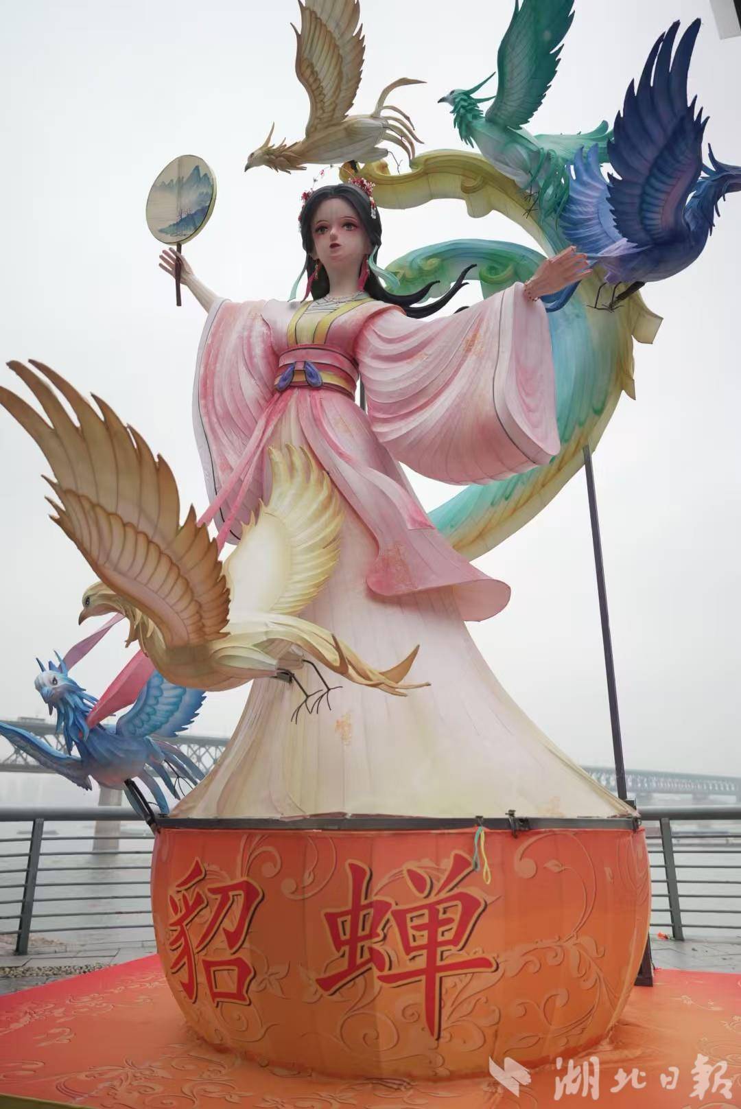江汉朝宗、高山流水、一马晴川、凤舞九天、龟蛇起宏图……现场五大主题灯组紧扣“知音、三国、长江”三大文化主线,一步一景,拍照即大片。四大美人——貂蝉、甄宓、大乔、小乔,依江而立,裙袂飘飘,栩栩如生,吸引不少市民游客拍照打卡。
