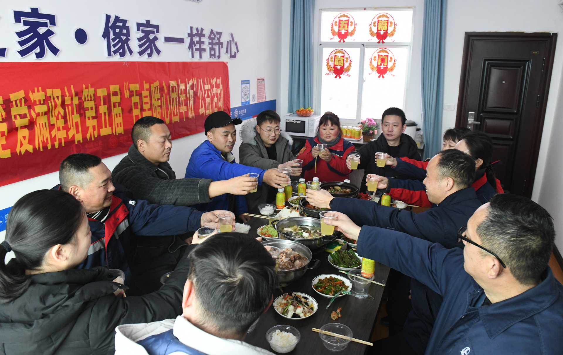 当天,湖北荆州石油党委副书记、副经理陈刚,锣场西站站长尚梅玲正与几名外地司机围桌而坐,共品荆楚特色团年饭。热气腾腾的烟火气,让春运路上的异乡人暖意融融。
