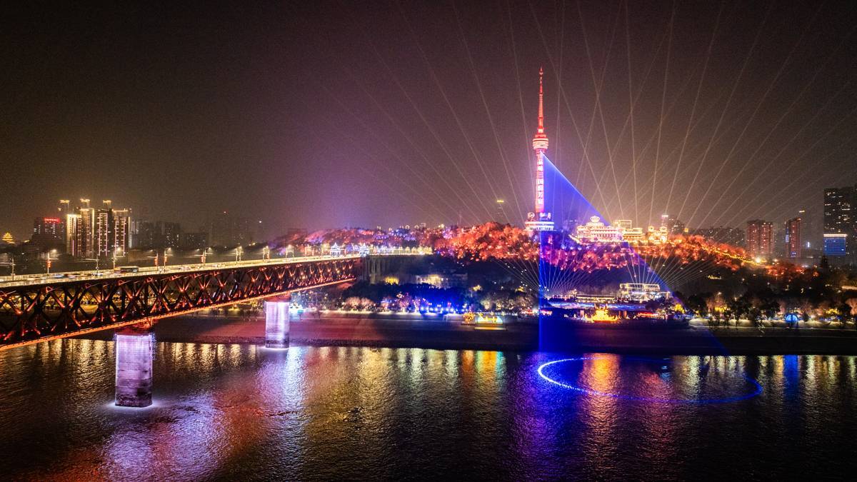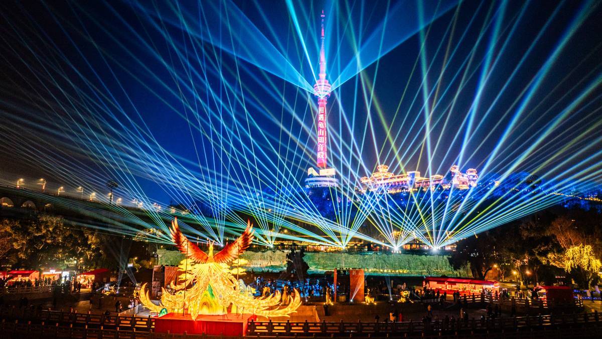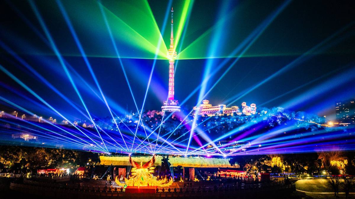 2026年2月10日晚,2026武汉新春晴川灯会在武汉市汉阳江滩大禹神话园璀璨启幕。其中高达12米的“凤舞九天”与对岸黄鹤楼遥相呼应;《长江幻境》沉浸光影秀,以龟山电视塔为背景,现场演绎长江文明。灯会核心区域南起朝宗门、北至晴川门,全长约1000米,占地9000平方米。打造了“繁盛江城·东方画境”“秘林探奇·大禹秘境”“荆楚浪漫·晴川诗境”三重盛境,串联“小年”“春节”“元宵”三个周期,采用“白+黑”运营模式,每日中午12时至晚上10时免费向游客开放。(湖北日报全媒记者 何宇欣 摄)