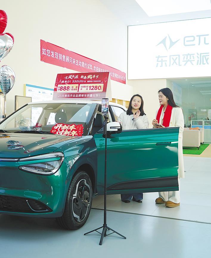“直播间的朋友们,过年打年货,就选东风纳米01。”2月6日,在东风汽车商城襄阳红牡丹店,主播郭梦月带网友“云看车”,把襄阳造纳米01的时尚范儿和科技感,讲得明明白白。