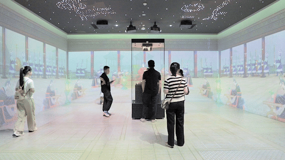 宝鸡青铜器博物院数字化何尊展厅吸引参观者沉浸式观看(央广网记者 侯凯奇 摄)